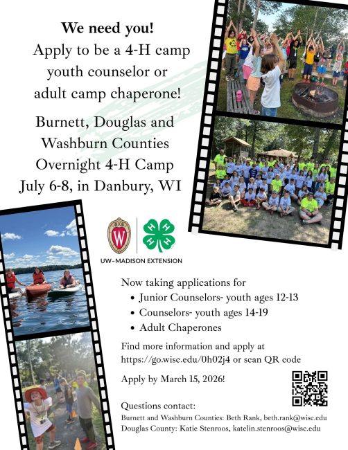 Are you looking for a way to give back? We are looking for passionate volunteers to join our counselor team this summer. This isn’t just about “helping out”—it’s about being the spark that makes a child’s summer unforgettable. Apply now to be a 4-H Camp Counselor (ages 14-19) or 4-H Camp Junior Counselor (ages 12-13). Camp dates are July 6-8th.